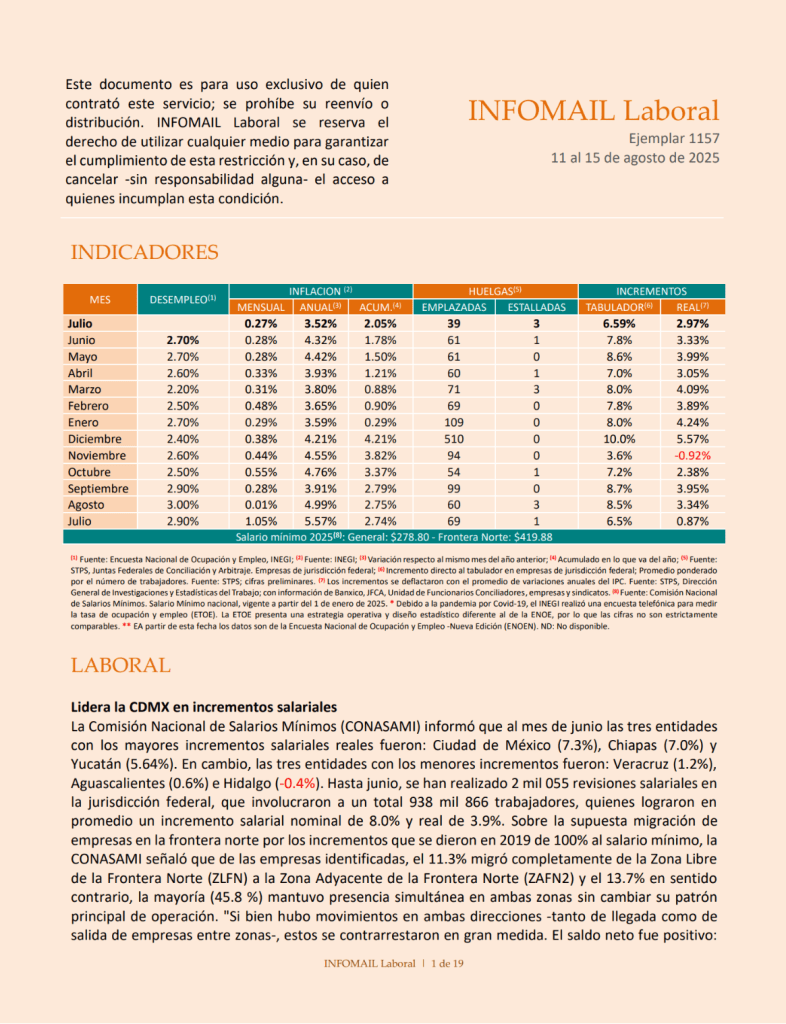 MEXICO Laboral es la casa de INFOMAIL Laboral, el mejor servicio informativo para quienes están interesados en lo que acontece en el ámbito laboral de México, en particular en temas de relaciones laborales y compliance.